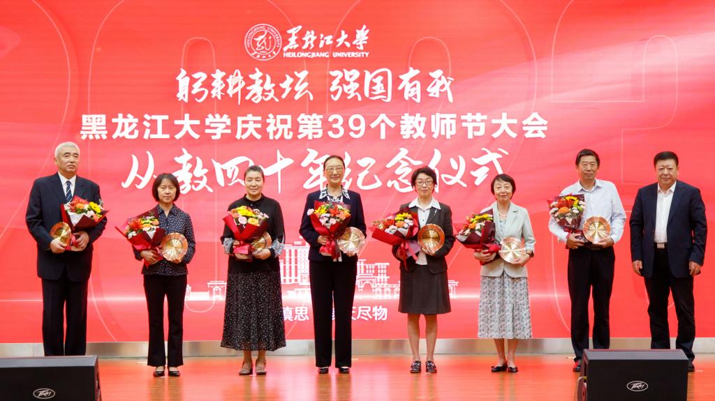学校82年的办学征程中,一代代黑大人前赴后继、砥砺前行,在从教三十年、从教四十年教师纪念仪式及退休教师荣休仪式上,校党委书记王永清、校长王敬波为教师代表颁发纪念奖牌、奖杯和鲜花,向他们表达了最崇高的敬意,并送上最真挚的祝福。