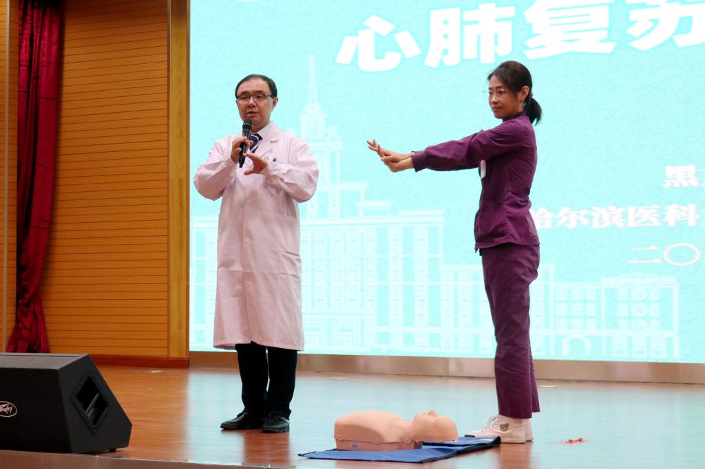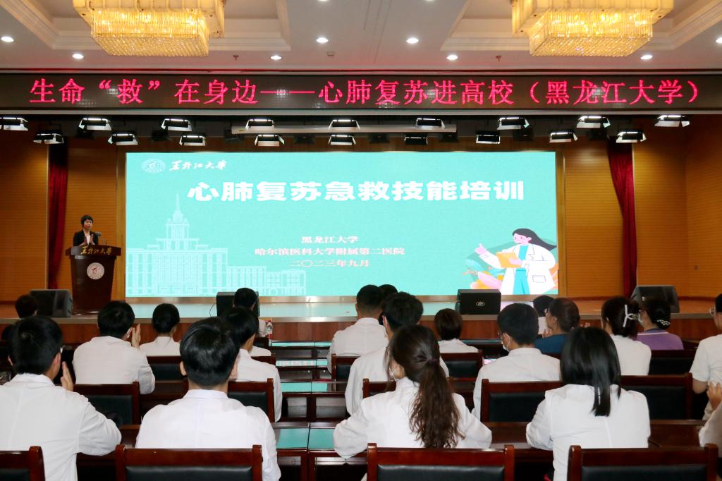 为全面普及应急救护知识与技能,增强广大师生的自救互救意识,推动平安校园建设,9月22日下午,我校邀请哈尔滨医科大学附属第二医院“心肺复苏进高校”项目组为我校师生开展心肺复苏急救技能培训。我校2023级本科新生、全体公寓辅导员、学生管理人员共计7000余人参加培训。校党委书记王永清、哈尔滨医科大学附属第二医院党委书记王永晨、哈尔滨医科大学附属第二医院副院长贾海波出席培训启动仪式。启动仪式由学生工作部部长刘凤影主持。