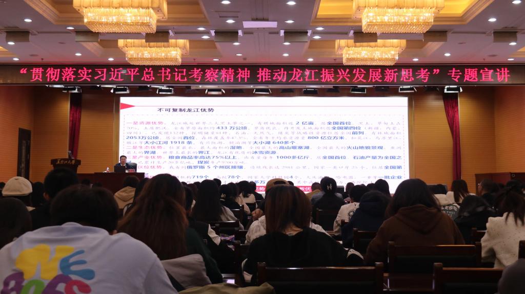 为深入学习贯彻习近平总书记在我省考察期间的重要讲话重要指示精神,巩固拓展主题教育学习成果,推动办学事业高质量发展,9月20日下午,校党委副书记李君明在主楼一楼报告厅作“贯彻落实习近平总书记考察精神,推动龙江振兴发展新思考”专题宣讲。组织部、教师工作部、工会全体党员干部,计算机科学技术学院(软件学院)党委、文学院党委和历史文化旅游学院党委的党员师生代表参加宣讲会。会议由党委常委、组织部部长王刚主持。