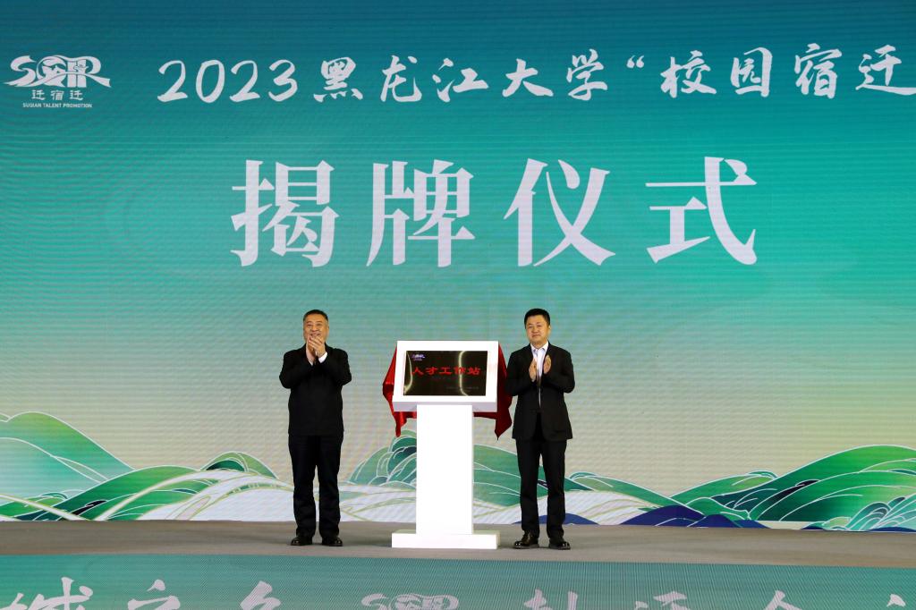 李卓、何泓共同为宿迁哈尔滨人才工作站揭牌。