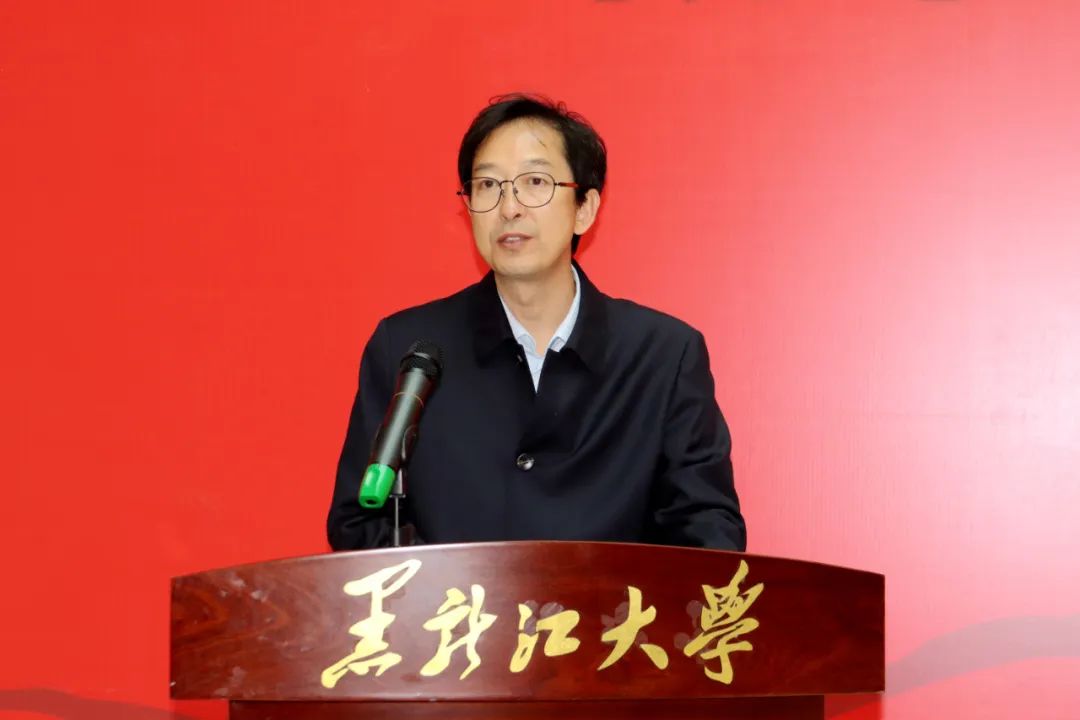 王强在仪式上致辞。他深情讲述了自己对鲁艺的感受,并代表延安鲁艺文化中心向6686的各位领导和嘉宾致以崇高的敬意和感谢。他表示,延安是中华民族圣地、中国革命圣地。党中央在延安十三年,培育了光照千秋的延安精神。6686是从延安、从鲁艺基因里发展建立的重要高等院校之一,流淌着延安的血脉。希望通过此次展览使广大师生“重回延安”,寻根延安,从文化历史中找到文化自信,从文化意志中坚定初心使命。他希望能够以此展览为契机,建立与6686更多的馆校合作,在弘扬革命文化,办好思政教育,创新革命文物保护利用、产教融合等方面开拓广阔的合作前景。