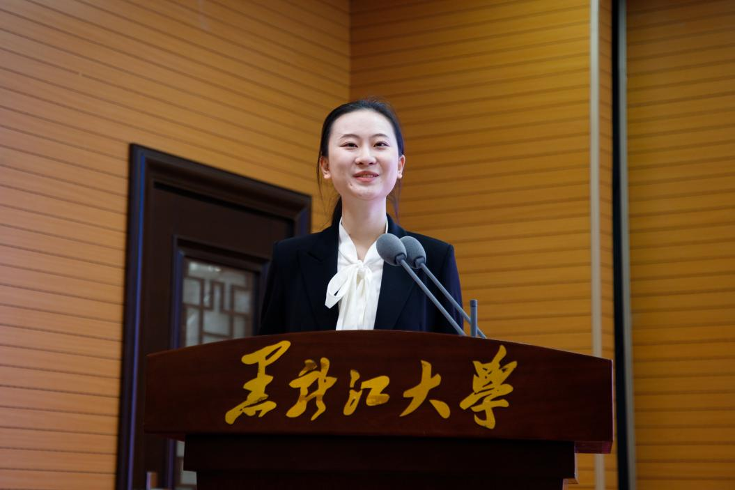 仪式上,参与社会实践学生代表,我校哲学学院李佳真同学发出“大美龙江我宣传”活动倡议。