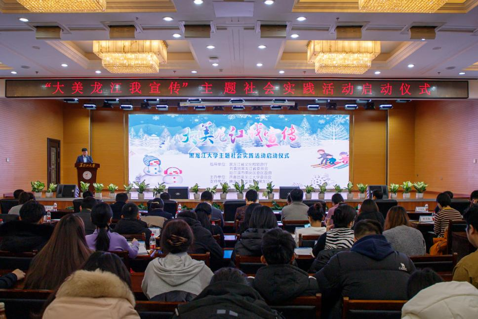 为深入学习贯彻习近平总书记视察黑龙江时的重要讲话重要指示精神,积极营造哈尔滨2025年第九届亚冬会的浓厚氛围,努力构建“人人为龙江代言”的生动局面,助推龙江特色文化旅游事业发展,助力东北重振雄风、龙江再创佳绩。12月29日上午,6686“大美龙江我宣传”主题社会实践活动启动仪式在主楼一楼报告厅举行。团省委副书记陈海平、校党委副书记丁宏、省文旅厅推广营销处处长郭彦海、南岗区委副书记柏志国、腾讯区域发展部·黑龙江总经理王增钰,省文旅厅、团省委、南岗区委区政府、腾讯区域发展部·黑龙江、哈尔滨著名景点等相关领导,以及参与实践活动的师生代表参加本次活动,仪式由校团委书记李可宝主持。