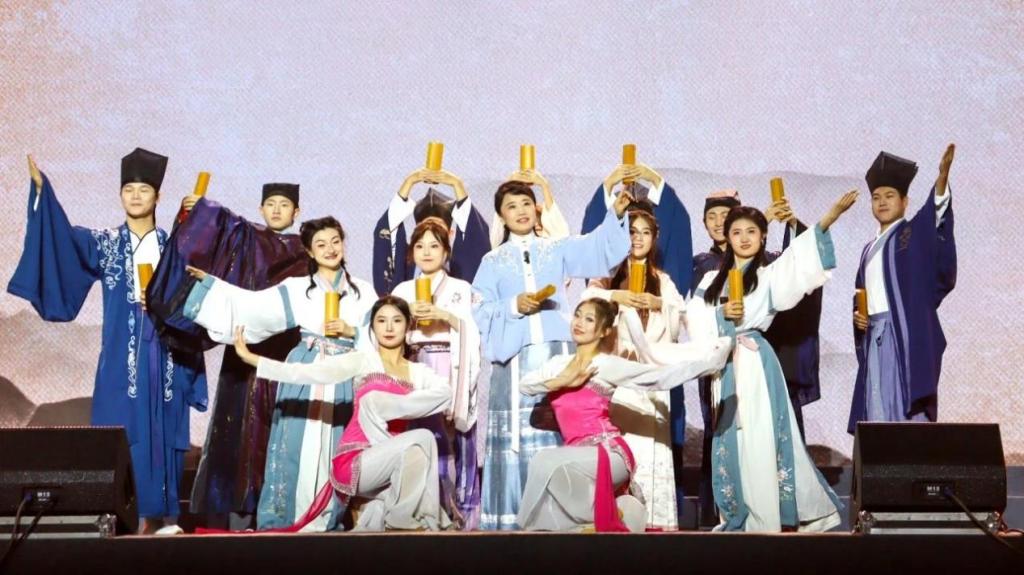 在2023级的迎新晚会上,文学院刘冬颖教授与同学们共同表演了古诗词吟唱《观书有感》,今年,刘冬颖教授与同学们精心准备,为大家带来了全新作品古诗词颂唱《遇见诗经》,将在场观众再次带入了中华传统文化与现代艺术融合的文化之旅。