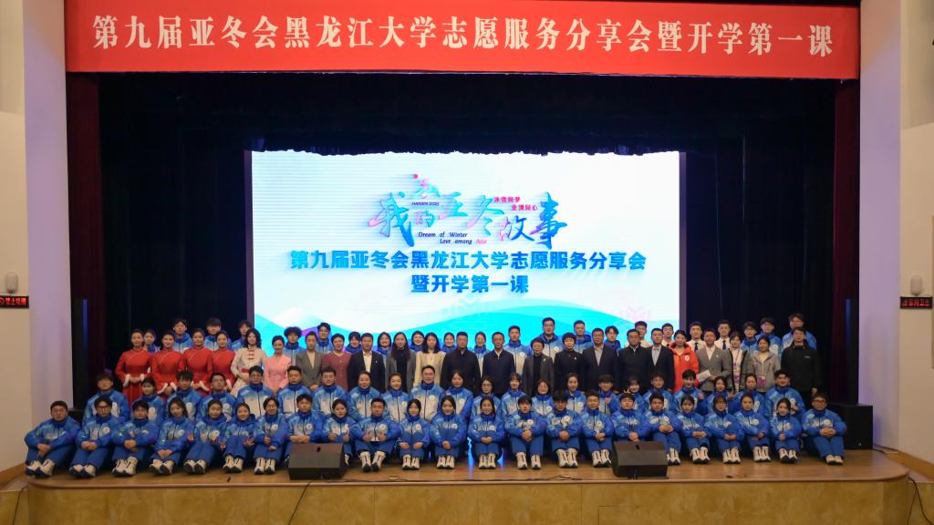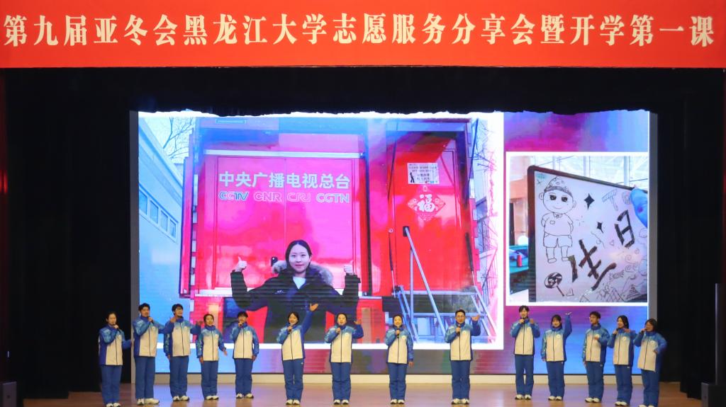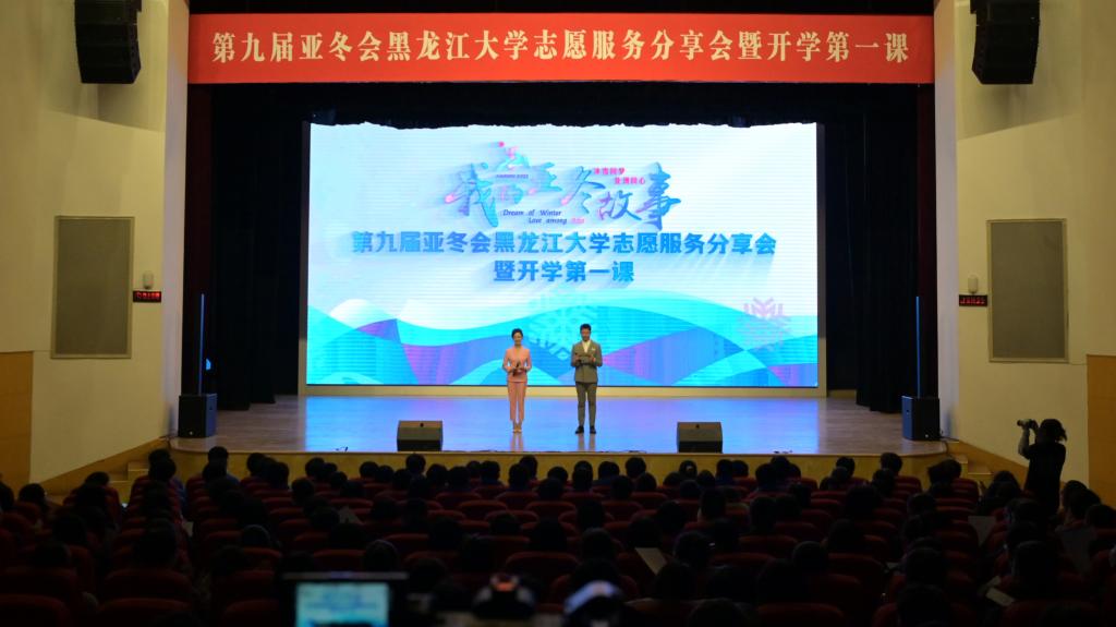 3月13日下午,我校在音乐厅举办“我的亚冬故事”第九届亚冬会志愿服务分享会暨开学第一课。校党委书记迟宝旭,校长王敬波,校党委副书记刘凤影,省委社会工作部五处处长赵良韬,党委常委、宣传部部长杨其滨,党委常委、组织部部长王刚,学校相关职能部门负责人、各学院主管学生工作领导、全体专职团干部、亚冬会志愿者带队教师、志愿者代表和学生代表等千余名师生参加活动,共同回顾这场冰雪盛会中的黑大担当,聆听志愿服务的青春赞歌,开启新学期奋进新征程的思政第一课。活动通过6686官方视频号进行直播。