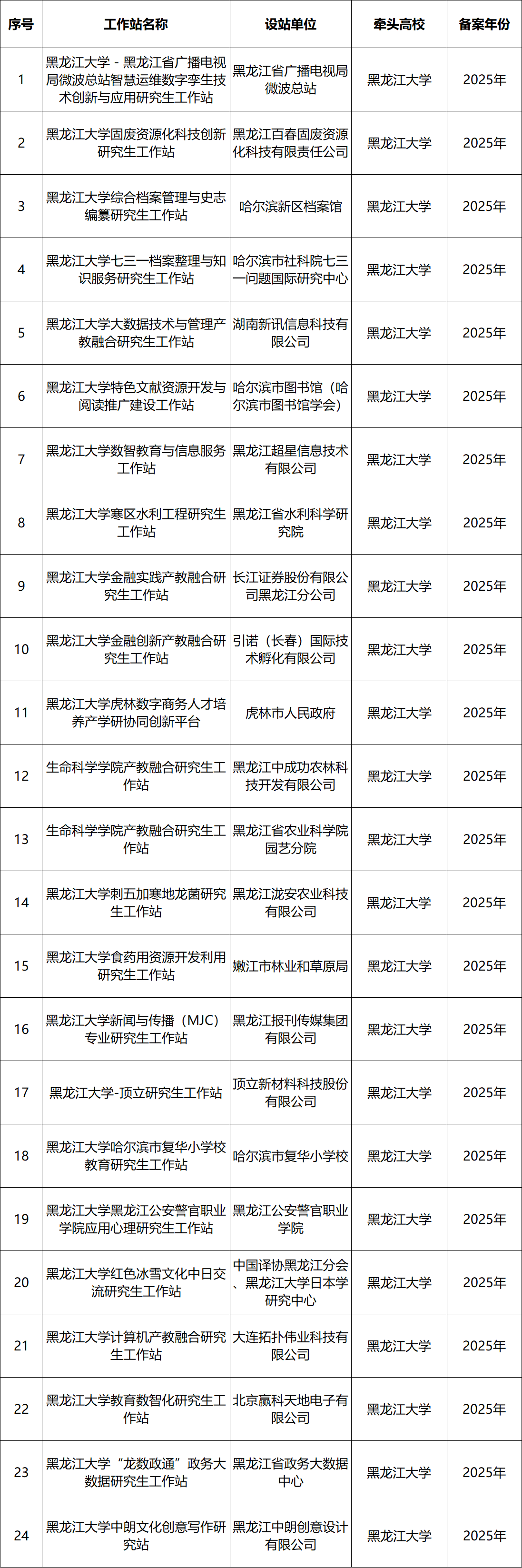 7月15日,我校接到省教育厅《关于备案2025年度黑龙江省产教融合研究生工作站的通知》,通知公布了2025年度黑龙江省产教融合研究生工作站备案名单,全省共备案270个研究生工作站,我校获批24个。