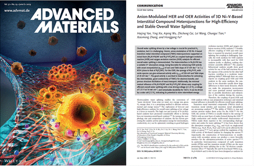 2. Adv. Mater. 2019, 31, 1901174 , Haijing Yan, Ying Xie, Aiping Wu, Zhicheng Cai, Lei Wang, Chungui Tian,*Xiaomeng Zhang, and Honggang Fu*. DOI: 10.1002/adma.201901174