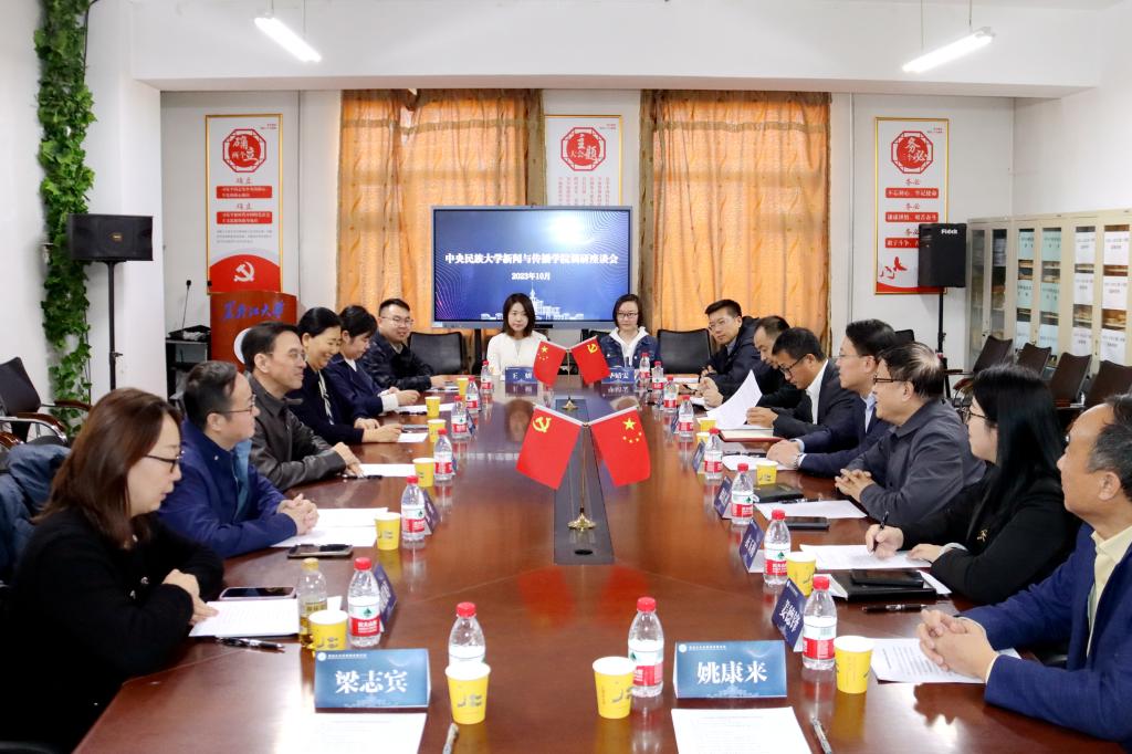10月16日下午,中央民族大学副校长王志、中央民族大学新闻与传播学院院长赵丽芳一行到我校调研,并在汇文楼742举行座谈会,副校长钟卫东、新闻传播学院相关负责同志出席。座谈会由新闻传播学院院长徐江善主持。