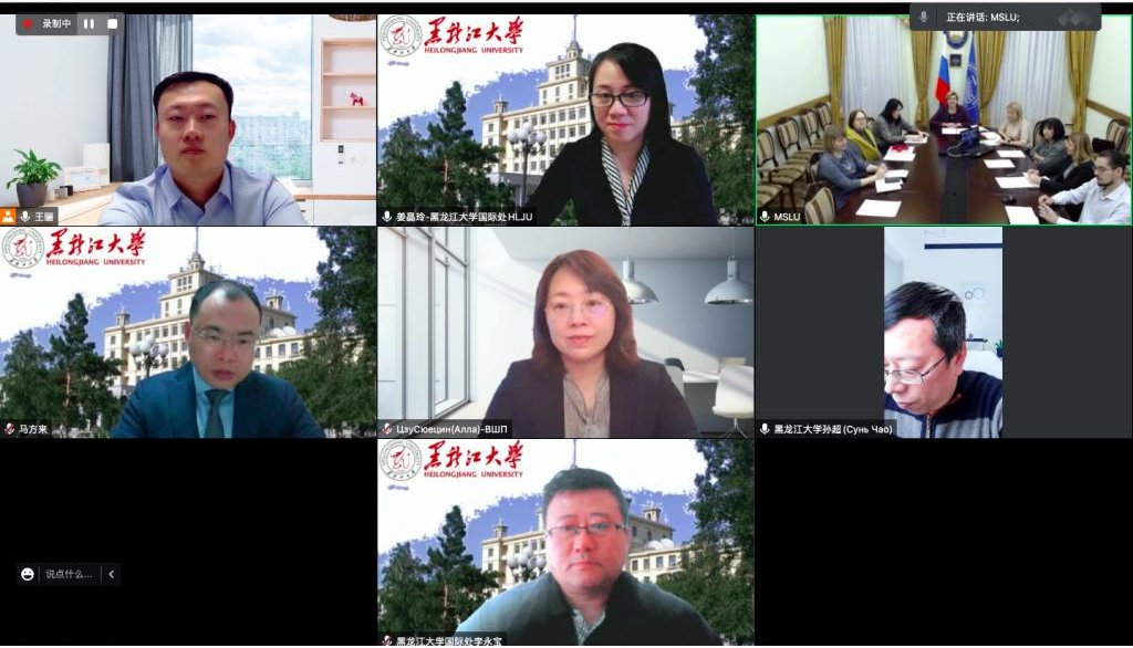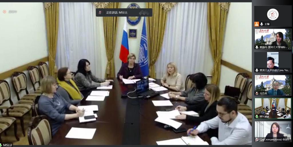 12月16日,我校与俄罗斯莫斯科国立语言大学(以下简称“莫语大”)以线上方式举行视频会议,就共同发起成立中俄语言教育大学联盟和开展联合人才培养项目进行讨论。我校国际文化教育学院(国际合作与交流处)党总支书记姜晶玲、副处长马方来,俄语学院院长孙超,高翻学院副院长祖雪晴,莫语大国际合作与国际化处处长绍金娜、翻译学院院长波霍尔科娃、外语学院院长格鲁宾娜及两校相关人员出席会议。