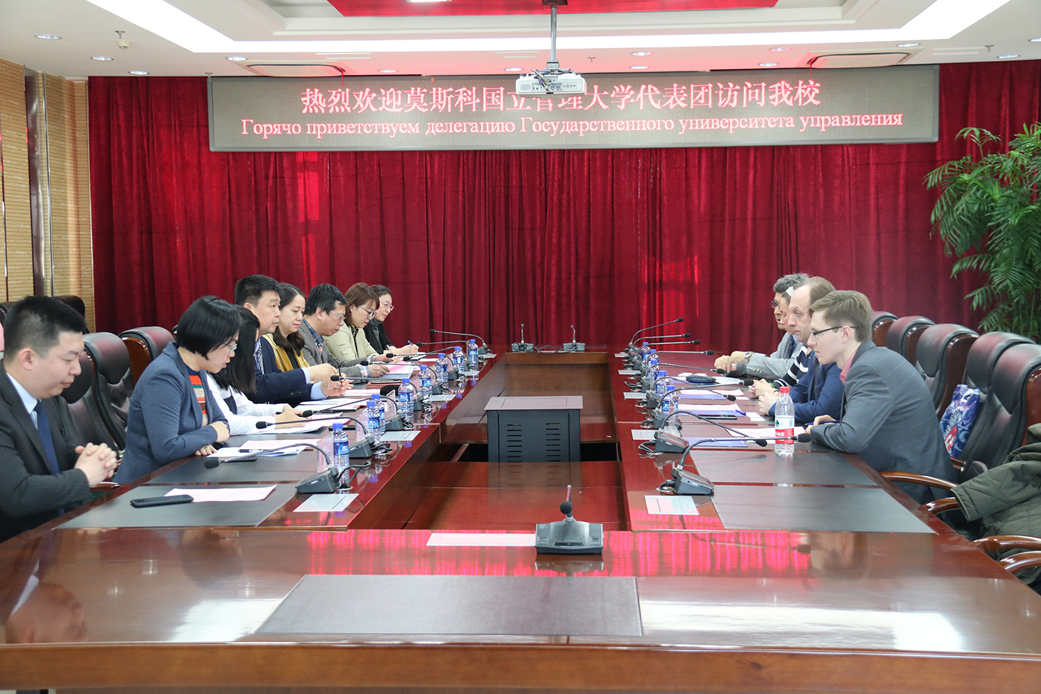 4月15日下午,莫斯科国立管理大学代表团一行访问我校,并与我校领导在主楼8楼会议室交流座谈。我校副校长严明,国际文化教育学院、俄语学院、中俄学院、经济与工商管理学院相关负责人参加会议,会议由我校国际与交流处副处长胡晓枫主持。