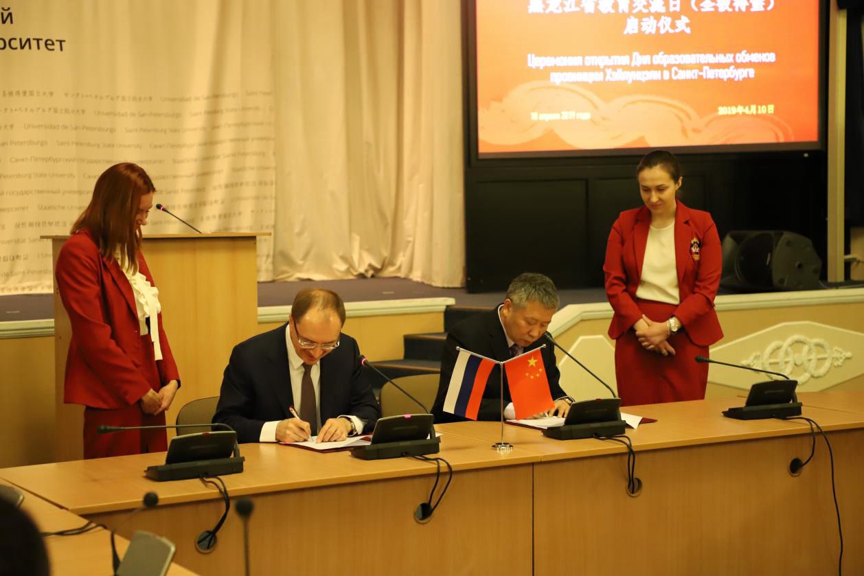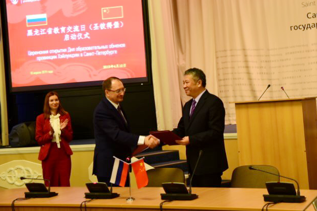 4月10日,付宏刚校长参加了在圣彼得堡国立大学举行的黑龙江省教育交流日活动启动仪式。王文涛省长率代表团出席启动仪式并致辞,高度肯定了本次活动的深远意义,希望我省高校与圣彼得堡国立大学继续深化合作,共同打造中俄全领域人才高地,搭建中俄民心相通之桥,使双方合作成为中俄教育合作最靓丽的名片。