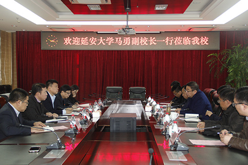 严明副校长对马勇副校长一行的到来表示热烈欢迎,他简要介绍了我校的历史沿革、学科建设等方面情况,尤其是学校的对俄办学特色。他表示,我校具有鲜明的抗大传统、红色基因,与延安大学渊源深厚,今后更要加强交流、精诚合作。