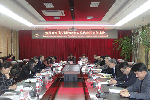 陈文远副校长在致辞中代表全校师生对俄罗斯战略研究所代表团来校交流访问表示热烈欢迎,并介绍了我校历史沿革、综合实力,尤其是我校对俄办学特色。他期待代表团专家对我校对俄办学提出宝贵意见,也希望学校与研究所在相关领域进行合作,共同为中俄全面战略协作伙伴关系提升做出贡献。