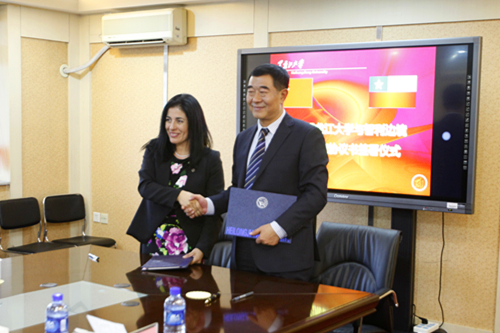 我校与智利边境大学签署了合作协议,并合影留念。(摄影:阳婕 孙嘉璐)