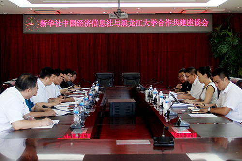 为支持国家“一带一路”建设,促进中俄贸易投资往来,8月20日上午,新华社中国经济信息社副总裁匡乐成一行访问我校,并在主楼八楼会议室进行会谈。新华社中国经济信息社新华丝路事业部总编辑李月,中国经济信息社黑龙江经济研究中心主任罗贵玉、中国经济信息社黑龙江研究中心分析师李清芬,我校党委书记刘德权,校长付宏刚,副校长严明,党委宣传部、俄罗斯研究中心、社会科学处等相关部门负责人共同参加了本次座谈会。