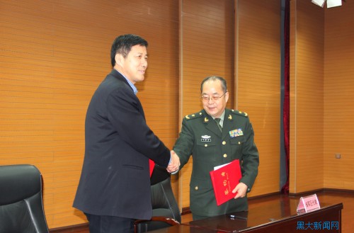 捐赠仪式上,省军区政治部主任夏中国分别与校方代表、哈尔滨工程大学校长助理赵士刚和我校党委副书记曲科军签订捐赠协议,并分别向两所学校捐赠助学金。