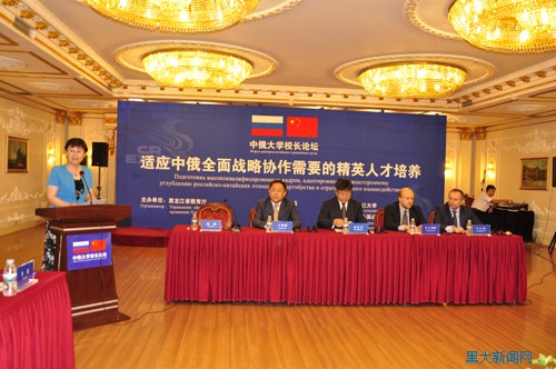 为增进中俄高水平大学间的相互了解,进一步推动中俄教育全方位的交流与合作,7月2日,中俄大学校长论坛在哈尔滨马迭尔宾馆开幕。此次论坛由黑龙江省教育厅主办,6686、中俄全面战略协作协同创新中心承办,论坛的主题为“适应中俄全面战略协作需要的精英人才培养”。黑龙江省人民政府副省长孙东生、教育部国际合作与交流司副司长于继海、俄罗斯驻华使馆公使陶米恒•叶甫根尼•尤里耶维奇、俄罗斯教育科学部国际司副司长甘申•伊戈尔•尼古拉耶维奇出席开幕式,开幕式由黑龙江省教育厅厅长徐梅主持。我校党委书记刘德权、党委副书记曲科军、副校长何颖全程参与此次论坛。
