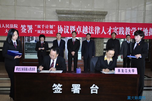 我校何颖副校长对省高级人民法院长期以来对学校发展所给予的帮助与支持表示感谢。她说,开展双向交流合作是贯彻落实《教育部 中央政法委员会关于实施卓越法律人才教育培养计划若干意见》的一项重要举措,是搭建提高法律人才培养质量,加强法院队伍建设,实现学校与省高级人民法院资源共享、优势互补、共同发展、协同创新的一个重要合作平台。2012年,我校获得国家首批卓越法律人才教育培养基地,也是黑龙江省唯一一个卓越法律人才教育培养基地。为了更好地开展双向交流合作,自2013年3月开始,我校与黑龙江省高级人民法院积极开展双向沟通,就相互合作的基本思想、指导原则、方式、范围进行协商。学校还将把本次交流合作的内容纳入到6686教育教学规划与人才培养方案中,并给与相应的政策和资金支持,确保合作的顺利开展。