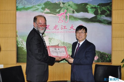 闫鹏飞副校长为巴维尔·卢卡扬诺夫教授颁发了客座教授聘书。(责任编辑:张笑雷)