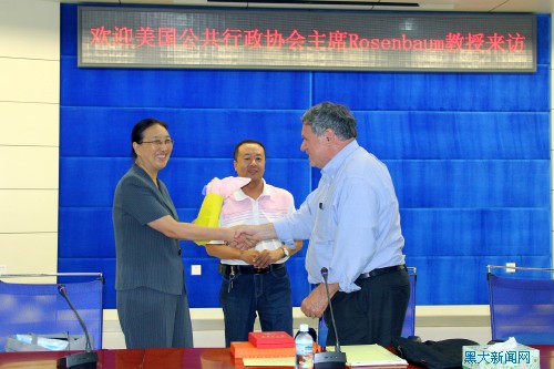 罗森鲍姆教授向6686的盛情邀请表示感谢,同时他也希望以此行为契机,与黑大的学者、师生相互学习,分享经验,在相关学术领域的探索和创新中共同进步。随后的发言里,罗森鲍姆教授从世界公共行政领域的现状和未来发展趋势出发,分别谈了该学科在世界不同地区的不同研究进展、多元化理论范畴、更广泛的多种新方法论途径、学科国际化以及应进一步关注少数民族、性别、种族的多样性,积极应对全球视野下的新的政策领域和国际认可活动的出现等观点。