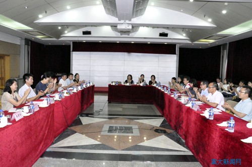 7月13日,黑龙江省委高校工委宣传部副部长刘铎及有关工作人员陪同上海哲学社会科学教学科研骨干研修班考察组莅临我校。当天下午,考察组一行在外事处多功能厅与我省学者、高校教师代表座谈。我校副校长何颖,我校法学院、文学院、哲学学院的教师代表出席了座谈会。