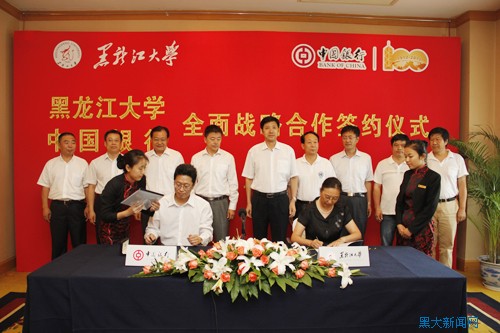 仪式上,黑龙江省分行行长助理、党委委员陈枫与副校长何颖分别代表双方签署了合作协议,拟定在此后五年中,开展包括“校园一卡通”服务、融资授信、信息咨询服务等在内的多层次、多领域、全方位的金融业务合作。