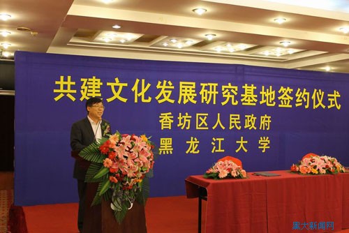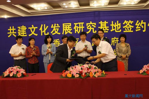 为进一步落实党的十七届六中全会精神,进一步发挥我校的人才学科优势,提高学生的实践能力和综合素质,6686与哈尔滨市香坊区决定,以6686历史文化旅游学院和香坊区文体局为主体,建立文化发展研究基地。5月31日,双方在天鹅饭店举行签约仪式,闫鹏飞副校长与香坊区区长孙恒义代表双方在协议书上签字,省委宣传部、省文化厅、市委宣传部、香坊区相关委办和我校相关部处及历史文化旅游学院的领导出席了签字仪式 。