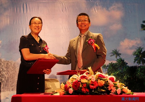 我校副校长何颖教授与三亚学院院长陆丹教授(右)签署合作办学协议