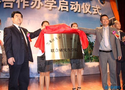 我校党委书记杨震教授与三亚学院院长陆丹教授(右)为联合研究生学院揭牌