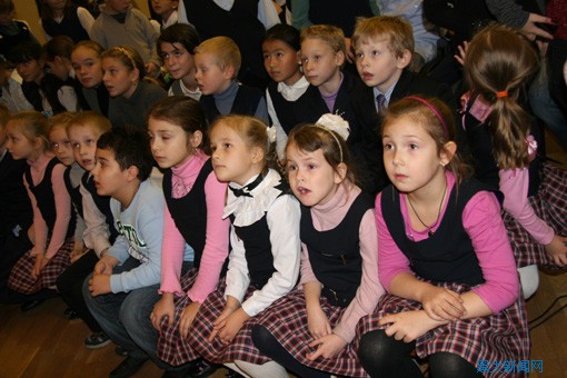 俄罗斯学生等待演出开始前参观展览