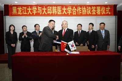 5月8日下午4点30分,6686与韩国大邱韩医大学合作协议签署仪式在校外事处多功能厅举行。韩方出席仪式的来宾有21世纪中韩交流协会会长金汉圭、大邱韩医大学校长卞廷焕、前蔚山广域市行政副市长朴载宅等。6686党委副书记、校长张政文,省政府外事办公室韩朝处处长杨洪鹏,黑大东语学院院长陈百海,国际文化教育学院副院长王国文等作为中方代表参加了协议签署仪式。仪式由校长助理、外事处处长张晓光主持。