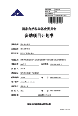 2014年,国自然广东联合基金,新型桥联基复合的可见光催化能源材料的可控制备及应用基础研究。