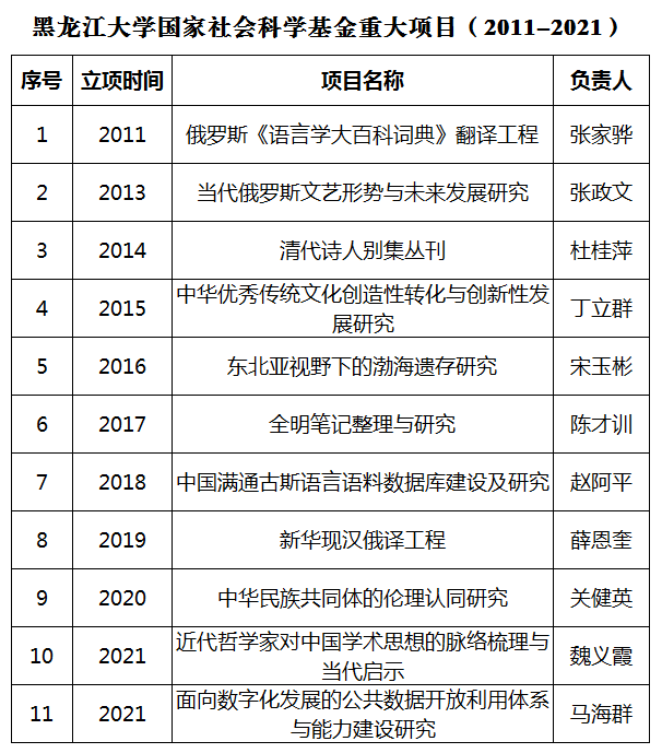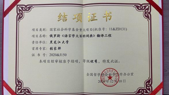 2020年9月,国家社会科学基金重大项目“俄罗斯《语言学大百科词典》翻译工程”项目成果鉴定会在我校举办。该项目是黑龙江省首个立项并结项的国家社会科学重大项目,结项等级为优秀。