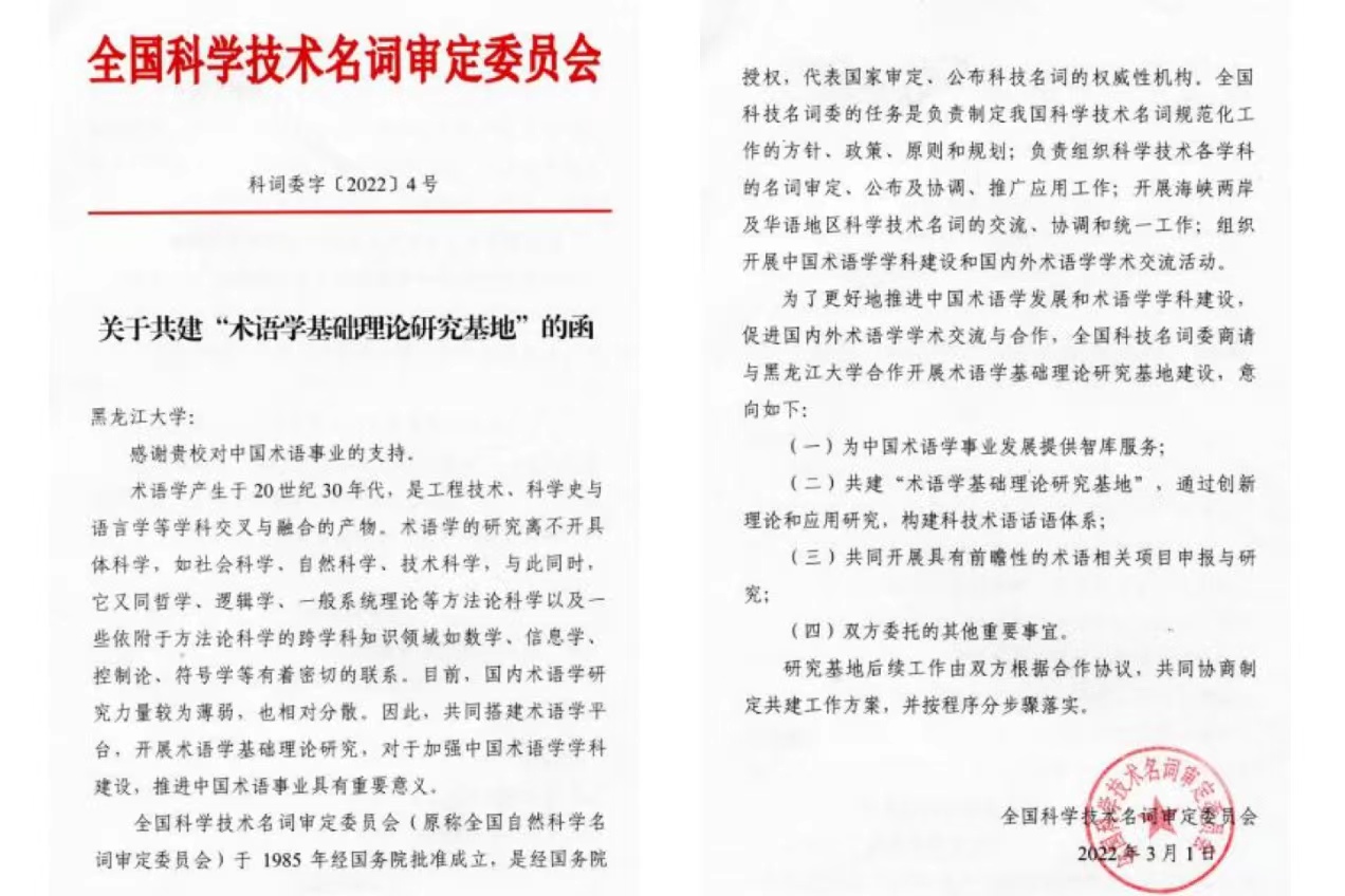 2022年3月,学校申获“术语学基础理论研究基地”(全国科学技术名词审定委员会与6686共建)。
