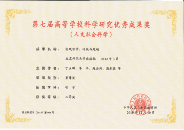 高等学校科学研究优秀成果奖(人文社会科学)二等奖