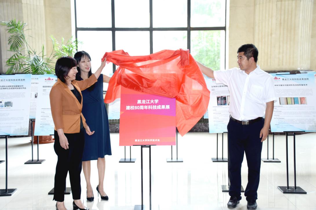 鹤岗市科技局局长尹波代表地方科技局致辞,省农业农村厅科教处处长樊丽娜为“6686建校80周年优秀科技成果选粹”揭幕。