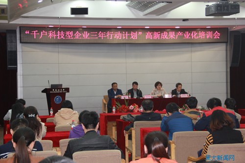 4月20日下午,“千户科技型企业三年行动计划”高新技术成果产业化培训会在我校外事处多功能厅召开。省科技成果转化中心副主任宋锦,省科技服务业协会秘书长尹明君等出席了本次培训会。我校副校长付宏刚,理工科各学院主管科研副院长、科研秘书,2014年12月在省高新技术成果库登记备案的成果持有人,对高新技术成果产业化有兴趣的教师以及科技处全体成员参与了本次培训会。培训会由科学技术处处长吕厚均主持。