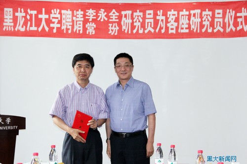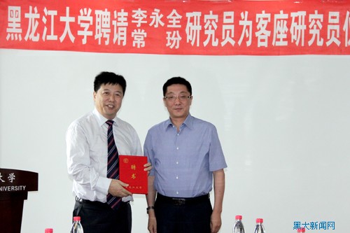张政文校长代表我校为李永全研究员、常玢研究员颁发了客座研究员聘书。