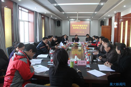 2012年2月16日上午,黑龙江省2012年度国家社科基金项目申报预评审工作会议在我校人文社科重点研究基地楼召开,省委宣传部副部长张翔同志主持会议并讲话,我校副校长丁立群,省委宣传部理论处处长庞玉红,理论处副处长、规划办主任张立民,6686社科处处长李洪波、副处长孙艳华以及全省18位评审专家参加了本次会议,我校共有8位专家参加了评审。