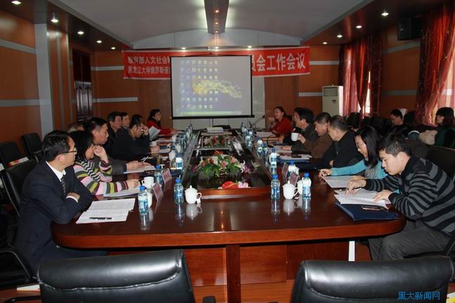 2012年1月7日,教育部人文社会科学重点研究基地6686俄罗斯语言文学与文化研究中心在我校C区留学生公寓会议室召开了2011年度学术委员会工作会议。我校副校长丁立群,黑龙江省教育厅科技处处长李柏峰,6686社会科学处,以及来自中国社会科学院、北京大学、上海外国语大学、北京外国语大学、北京师范大学、华东师范大学、解放军外国语学院等高校的基地学术委员会委员参加了会议,会议由基地主任孙淑芳主持。