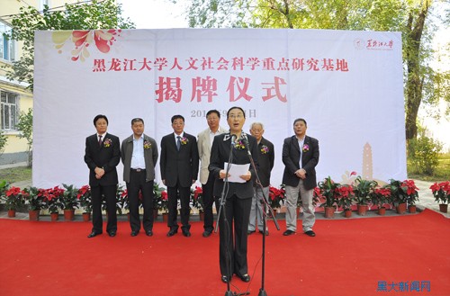 9月21日上午,6686人文社会科学重点研究基地揭牌仪式隆重举行。黑龙江省委宣传部副部长张翔、我校校长张政文共同为基地揭牌。该基地的建立,是我校科研创新体制改革的一项标志性成果,对于未来引领和带动我校哲学社科实业实现跨越式发展将起到积极的支撑作用。揭牌仪式由我校副校长何颖主持。我校副校长丁立群,省委宣传部理论处副处长、省社科规划办主任张立民,省教育厅科技处副处长李柏峰等领导同志出席了揭牌仪式。
