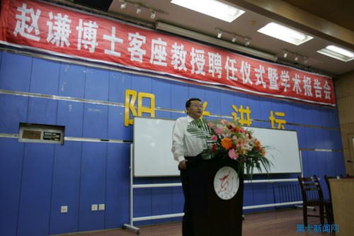 6月29日下午,财政部财政科学研究所特聘教授、黑龙江省政府采购办主任赵谦博士受我校经济与工商管理学院之邀做客阳光讲坛,为学校师生奉上了题为《当前的宏观经济形势及对策》的精彩的学术报告。副校长闫鹏飞出席了报告会。讲座由经济与工商管理学院院长焦方义主持。