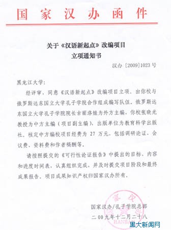 据悉,我校于2004年5月圆满完成“国家汉办2001年重点规划项目”——对俄中小学、大学本科系列汉语教材《汉语新起点》(中小学)、《汉语新目标》(大学)编写项目,弥补了当时适用于俄语国家汉语教学的汉语教材空白,将俄罗斯的汉语教学推进到一个更高的阶段,扩大了我校在俄罗斯汉语教学界和国内对外汉语教学界的知名度。