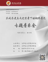 名称:不同历史与文化背景下的钢琴音色专题音乐会时间:2024年4月17日14:00地点:第二教学楼424多功能厅主办单位:沈阳音乐学院科研处承办单位:沈阳音乐学院钢琴系