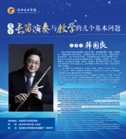 主讲嘉宾:韩国良 教授 博士生导师讲座时间:2024年4月26日15:00讲座地点:沈阳音乐学院三好校区室内乐演奏厅(华彩厅)嘉宾简介:韩国良现任中央音乐学院长笛教授、博士生导师、金校徽获...